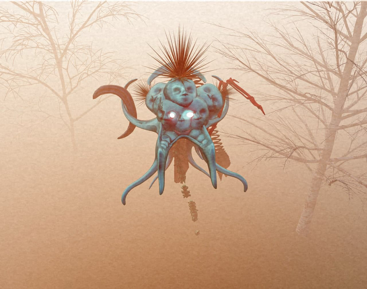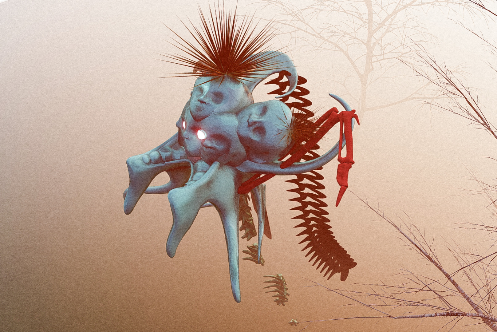Sculpted in Blender and rendered with V-ray on the night of the bloody lunar eclipse in complex ideas, poetic angst and concern for the future.