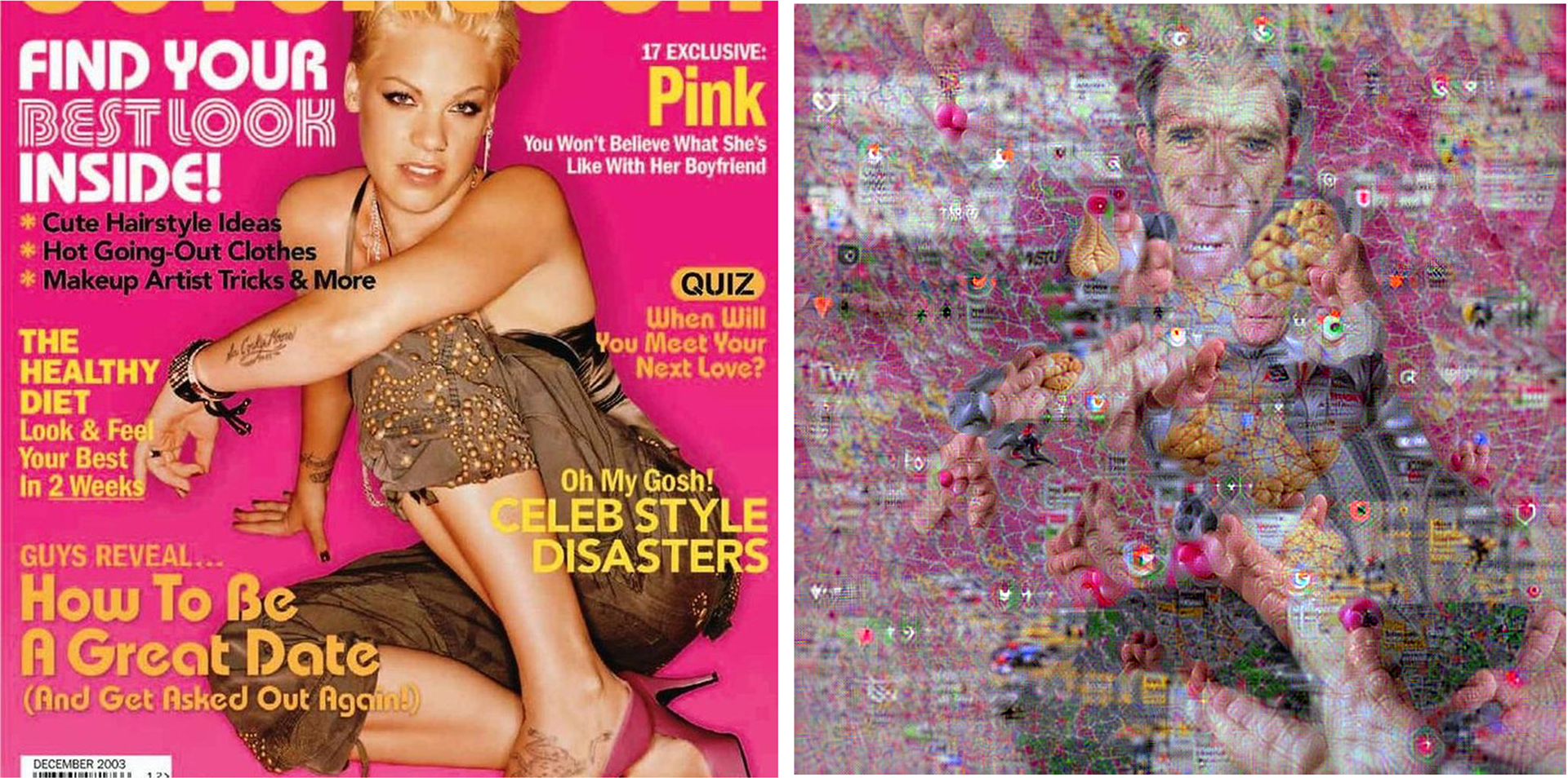 As a first step, I collected 100 magazine covers, both old and new, to glitch the images with the semantic disruption technique explored in Step 1.