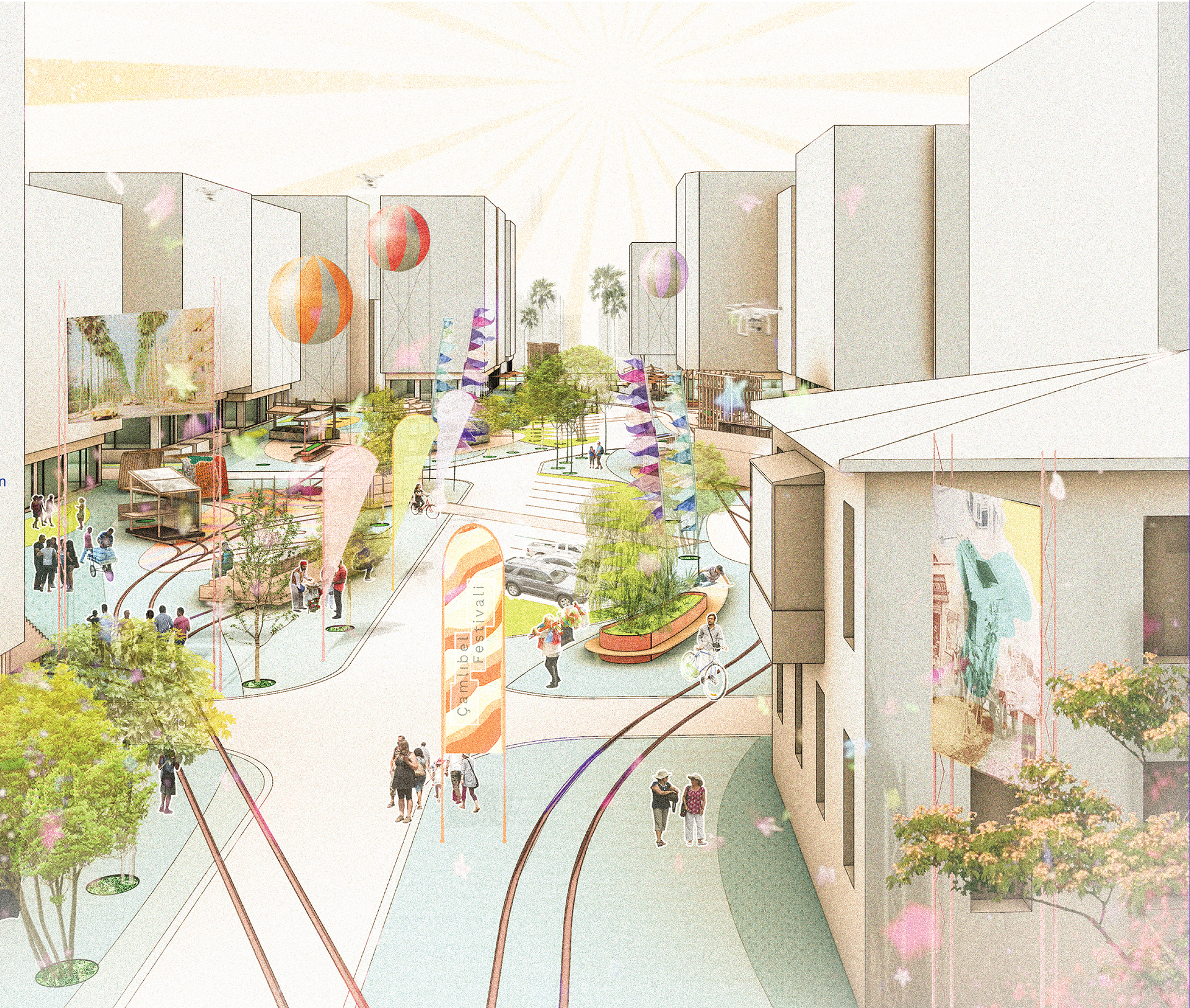 Türkiye’de pek örneği bulunmayan bir sivil mahalle birlikteliği ile bu esnaf zamanında sokak şenlikleri düzenleyerek, bir takım açık alan süslemeleri yaparak semtin yeniden canlanmasına çaba sarf etmişti. O çabaların izinde kentin ticari hayatının canlanması için tasarımın bu esnafın ticari faaliyetlerini destekleyici bir nitelik taşıması önemli olabilir. Özellikle pandemiyle ortaya çıkan büyük ve kapalı alanlara yönelik tereddütleri de hesaba katarak, semtin küçük esnafının açık havada hizmet sunmasını sağlayacak imkanlar düşünülmeli. Esnafın bu istisnai bağı ve birliktelik zemini Çamlıbel’i yeniden düşünürken mutlaka hatırda tutulmalı, onu canlı ve işlevsel kılacak işlevsel roller ve mekânsal alanlar sunulmalı. Etkinliklerin düzenlenmesinden, bilgilendirme işlevlerini yerine getirmeye kadar birçok görev esnaf ve mahalle sakinlerinin birlikteliği ile oluşturulacak sivil bir platformun yetkisine bırakılabilir. Bu da tasarıma fiziksel planlamanın ötesinde kamusal, sosyal ve demokratik bir kimlik kazandıracak ve kentin genelinin ihtiyaç duyduğu sivil ortaklık zemininin bir nüvesini oluşturacaktır.